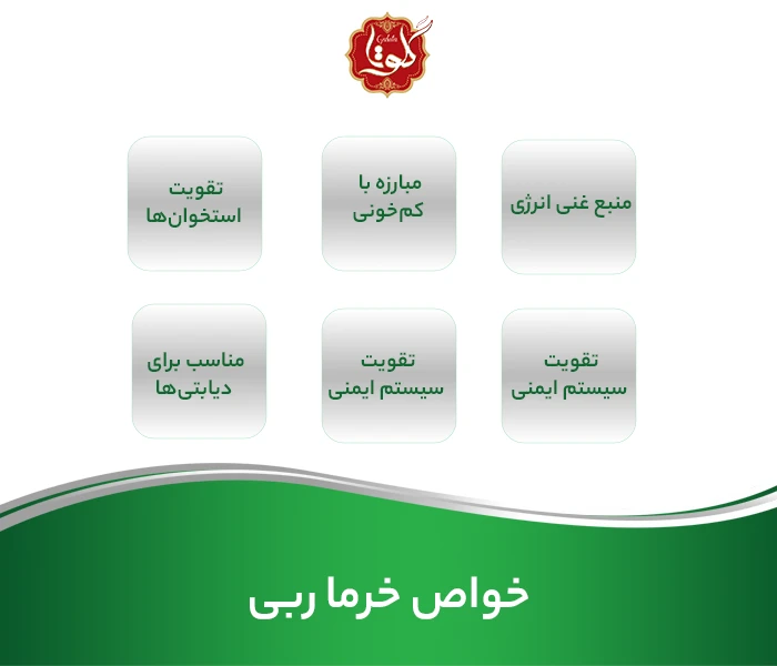 • تقویت سیستم ایمنی: وجود ویتامین C و آنتی‌اکسیدان‌های خرما ربی باعث تقویت سیستم ایمنی می‌شود.